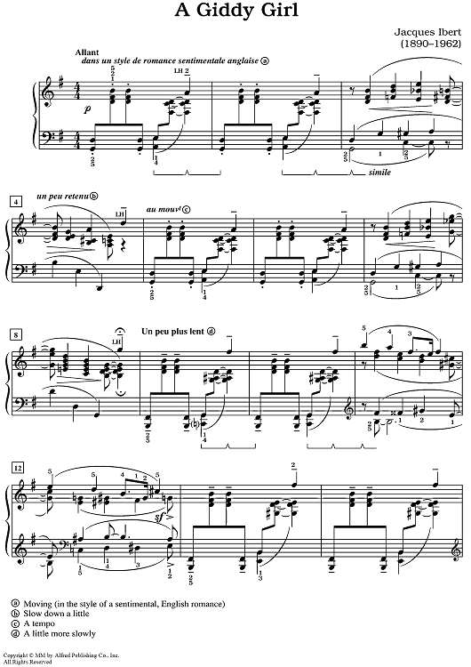"A Giddy Girl" Sheet Music by Jacques Ibert