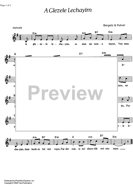 "A Glezele Lechayim - Score" Sheet Music by Bergotz