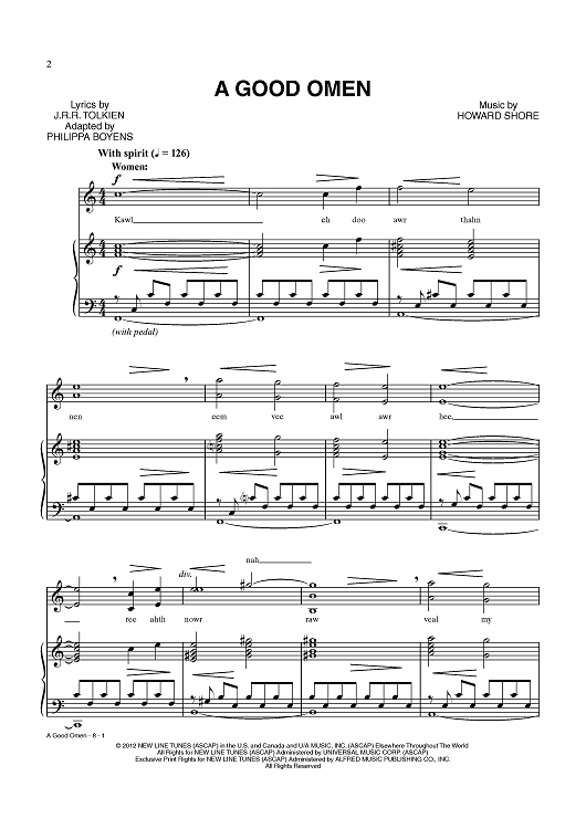 Digital Sheet Music for A Good Omen by Howard Shore, J. R. R. Tolkien, Philippa Boyens scored for Piano/Vocal; id:433850