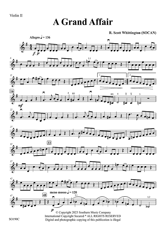 "A Grand Affair - Violin 2" Sheet Music by R. Scott Whittington