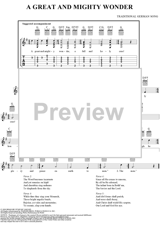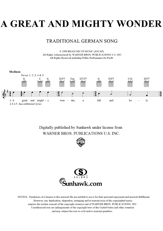 "A Great and Mighty Wonder" Sheet Music by Traditional
