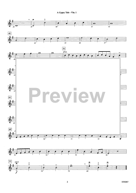 Digital Sheet Music for A Gypsy Tale - Violin 1 by Soon Hee Newbold scored for String Orchestra; id:440880
