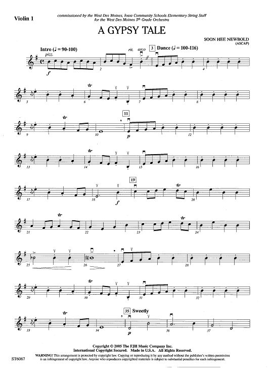 "A Gypsy Tale - Violin 1" Sheet Music by Soon Hee Newbold