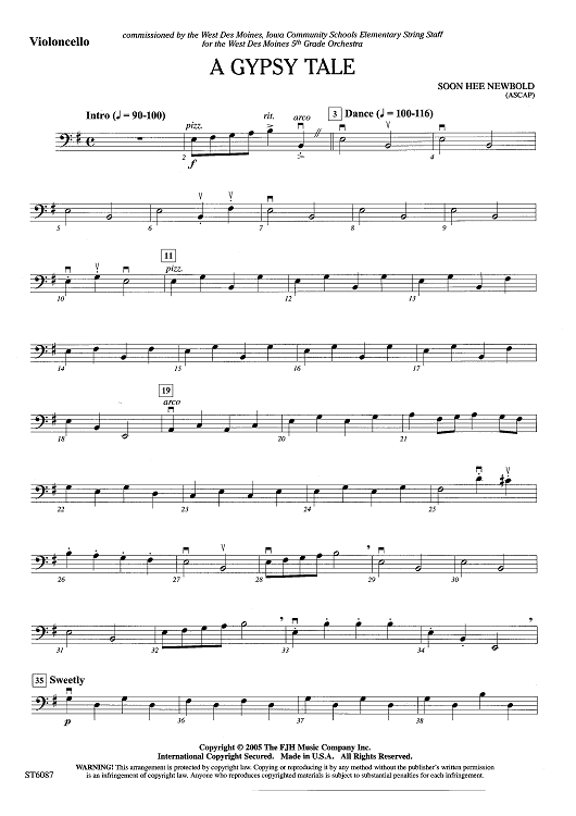 "A Gypsy Tale - Violoncello" Sheet Music by Soon Hee Newbold