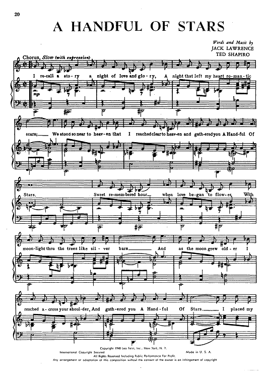Digital Sheet Music for A Handful Of Stars by Jack Lawrence, Ted Shapiro, Dan Dailey scored for Piano/Vocal/Chords; id:423087
