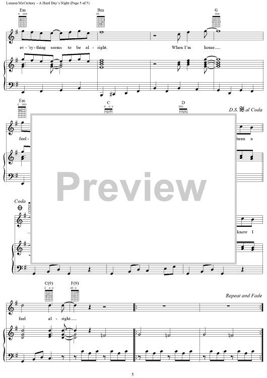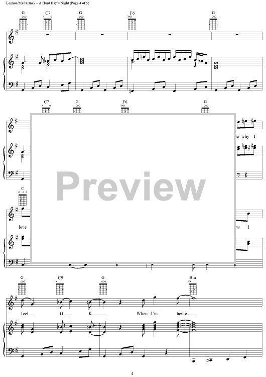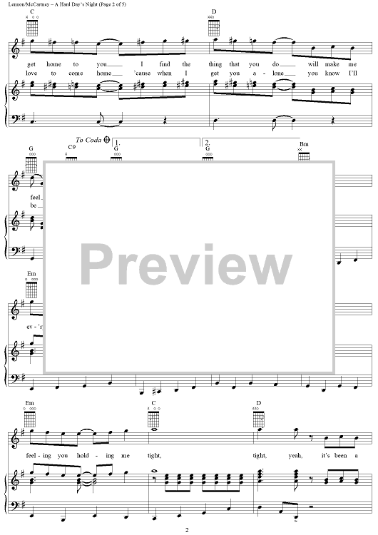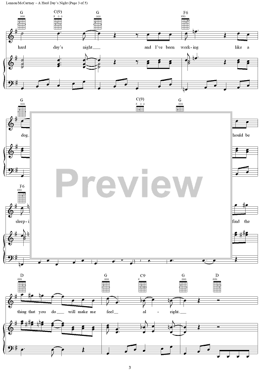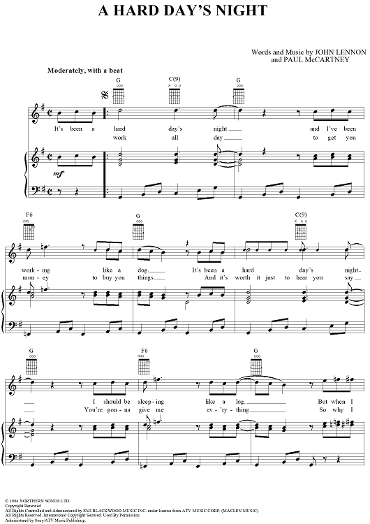 Digital Sheet Music for A Hard Day's Night by Paul McCartney, The Beatles, John Lennon scored for Piano/Vocal/Chords; id:117915