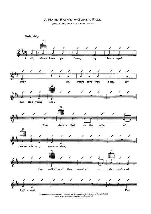"A Hard Rain's Gonna Fall" Sheet Music by Bob Dylan