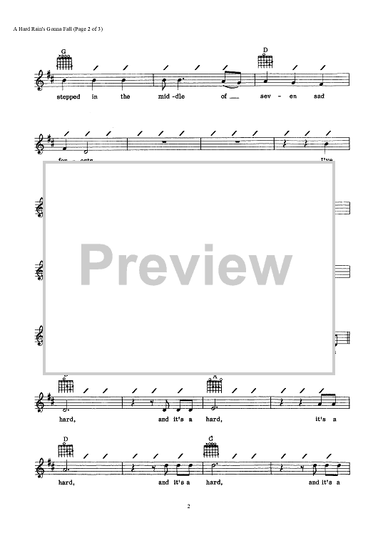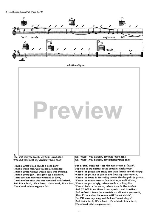 Digital Sheet Music for A Hard Rain's Gonna Fall by Bob Dylan scored for Lead Sheet; id:466291