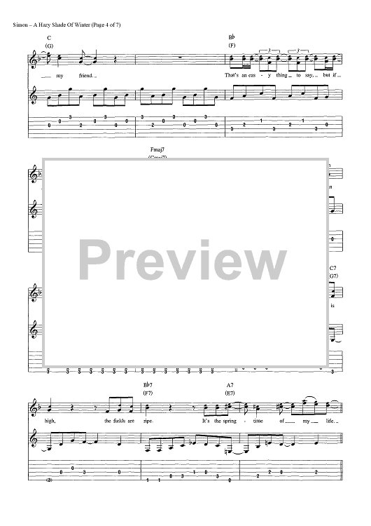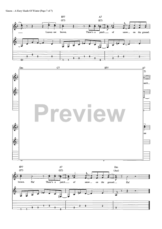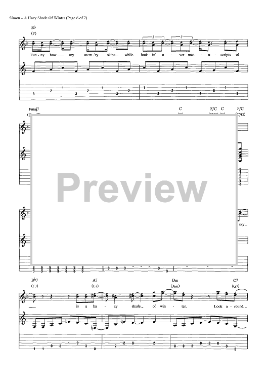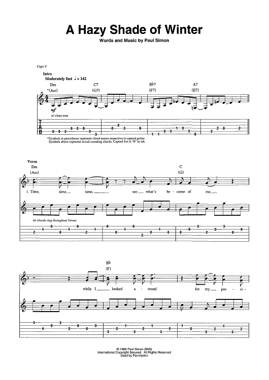 Digital Sheet Music for A Hazy Shade Of Winter by Paul Simon, Simon & Garfunkel scored for Guitar Tab/Vocal/Chords; id:454419