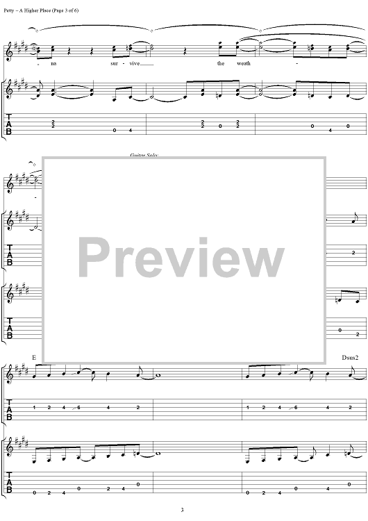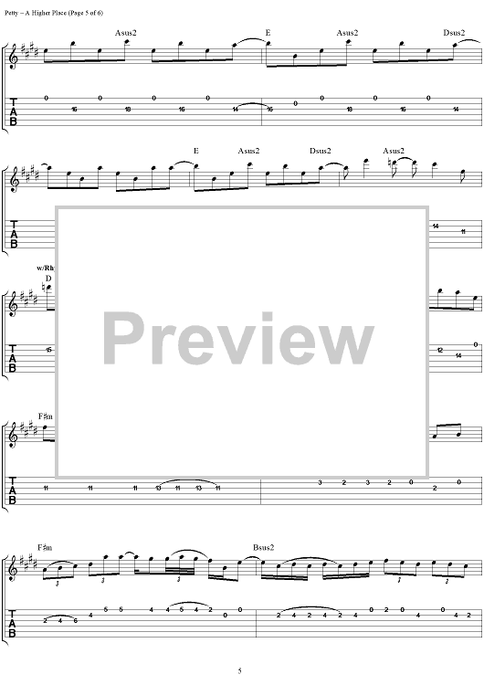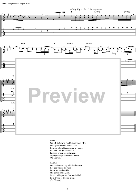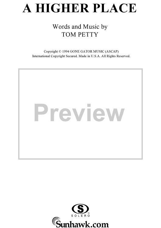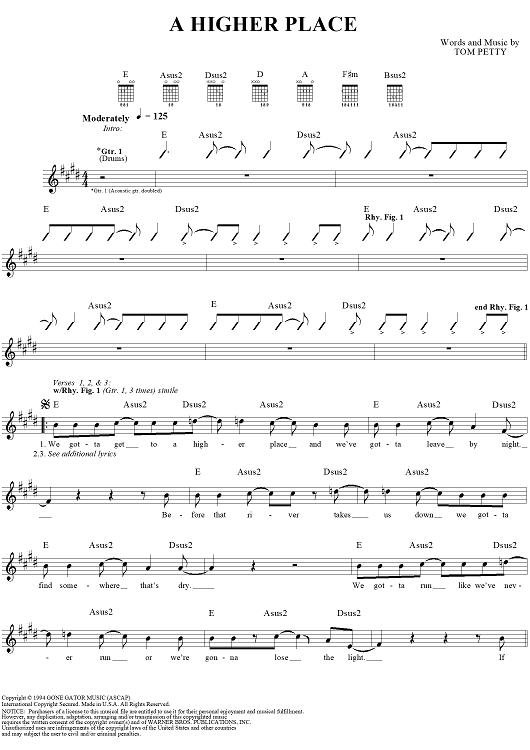 "A Higher Place" Sheet Music by Tom Petty