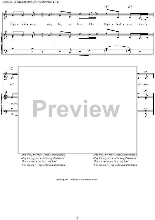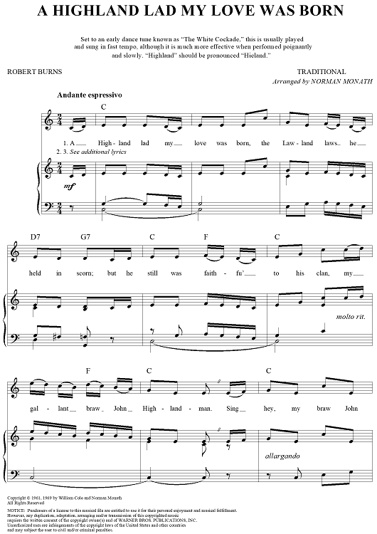 Digital Sheet Music for A Highland Lad My Love Was Born by Robert Burns, Norman Monath, Traditional scored for Piano/Vocal/Chords; id:120522