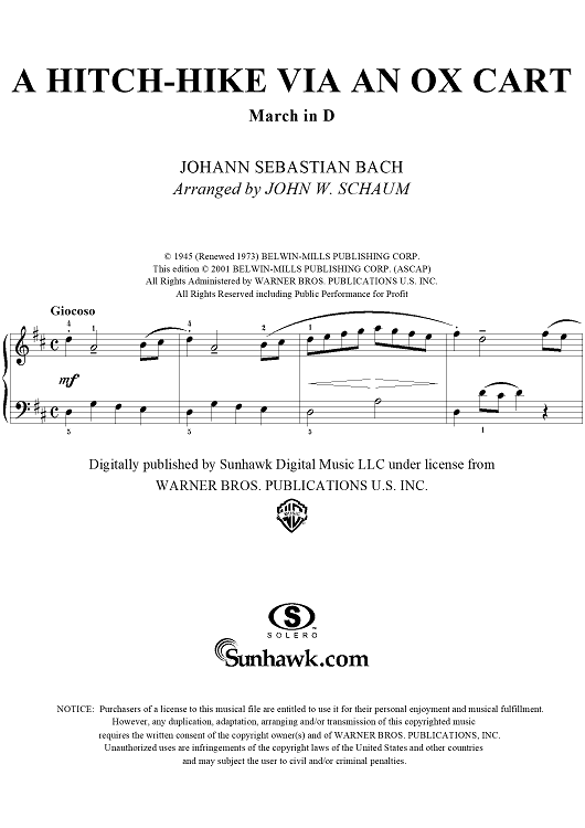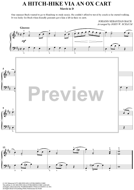 Digital Sheet Music for A Hitch-Hike via an Ox Cart (March in D) by John W. Schaum, Johann Sebastian Bach scored for Piano Solo; id:293062