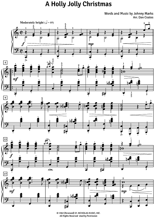 Digital Sheet Music for A Holly Jolly Christmas by Dan Coates, Johnny Marks scored for Piano Solo; id:501222