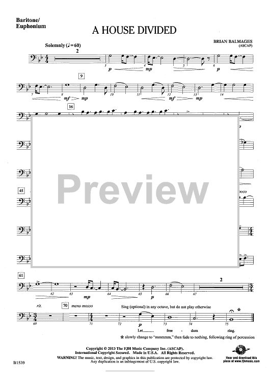 Digital Sheet Music for A House Divided - Baritone/Euphonium by Brian Balmages scored for Concert Band; id:442103