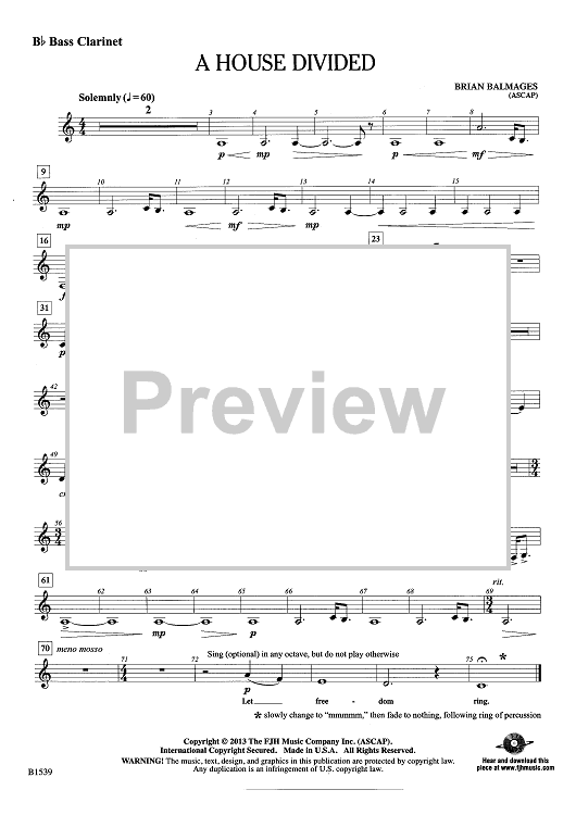 Digital Sheet Music for A House Divided - Bb Bass Clarinet by Brian Balmages scored for Concert Band; id:442093