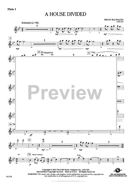 "A House Divided - Flute 1" Sheet Music by Brian Balmages