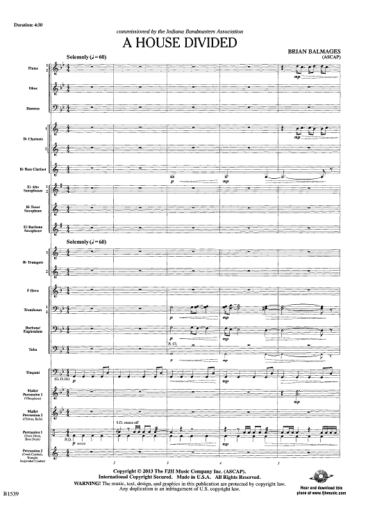 Digital Sheet Music for A House Divided - Score by Brian Balmages scored for Concert Band; id:442085