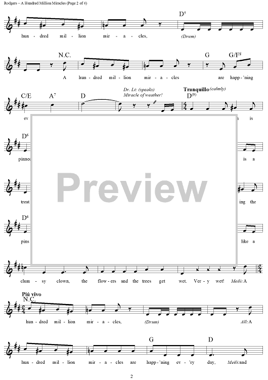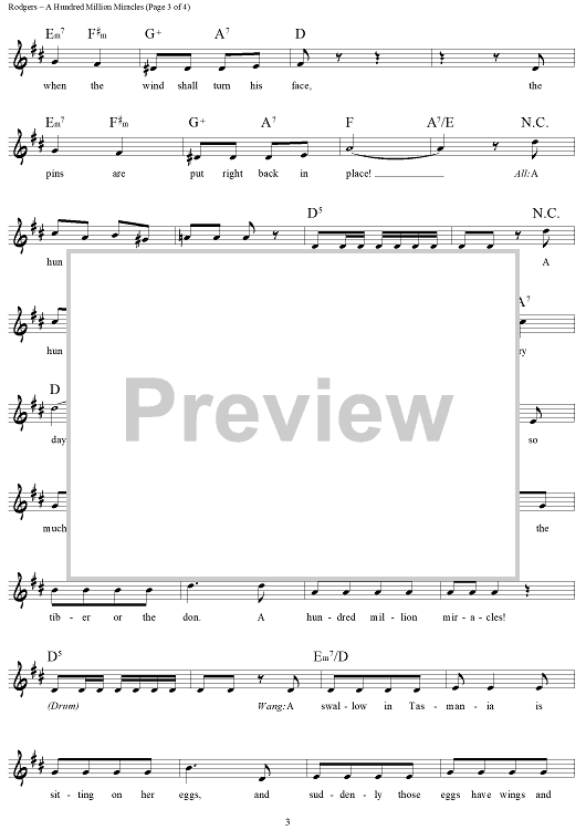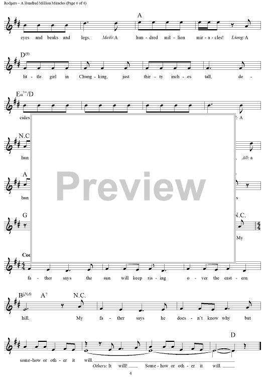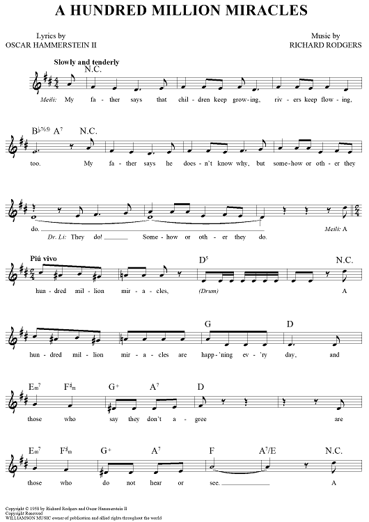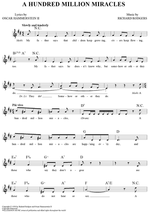 Digital Sheet Music for A Hundred Million Miracles by Richard Rodgers, Oscar Hammerstein II scored for Lead Sheet; id:444275