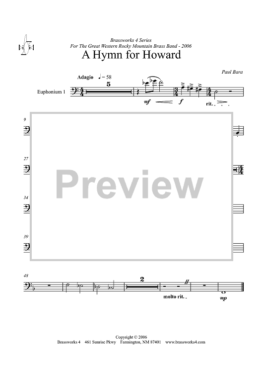 Digital Sheet Music for A Hymn for Howard - Euphonium 1 by Paul Bara scored for Brass Choir; id:358055