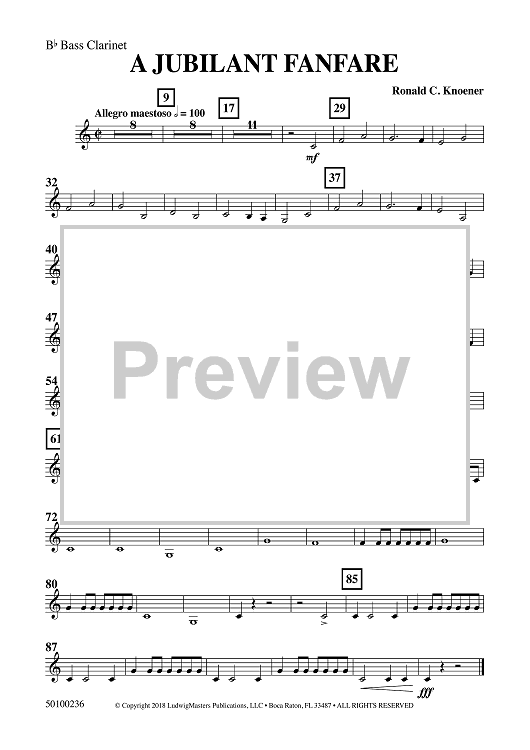"A Jubilant Fanfare - Bb Bass Clarinet" Sheet Music by Ronald C. Knoener