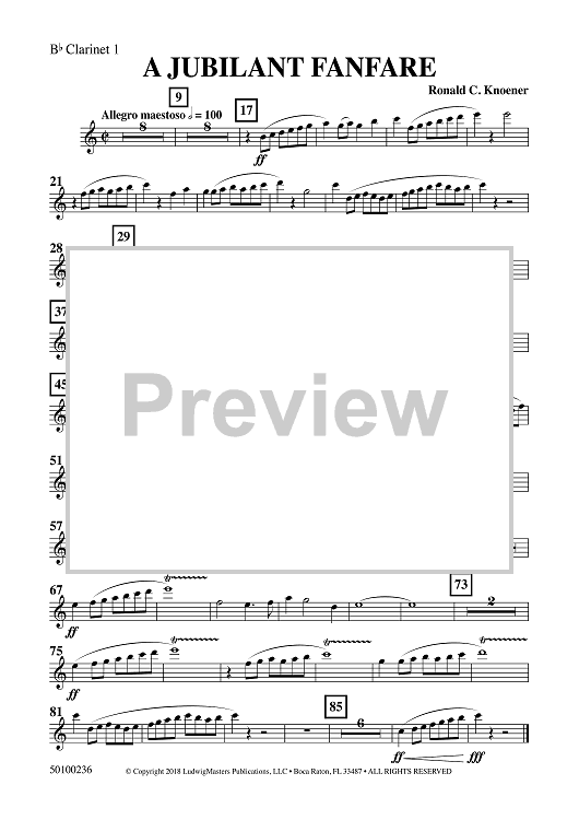 "A Jubilant Fanfare - Bb Clarinet 1" Sheet Music by Ronald C. Knoener