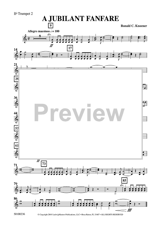 "A Jubilant Fanfare - Bb Trumpet 2" Sheet Music by Ronald C. Knoener