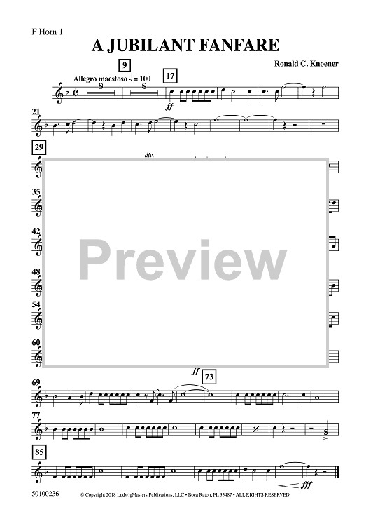 Digital Sheet Music for A Jubilant Fanfare - F Horn 1 by Ronald C. Knoener scored for Concert Band; id:507335