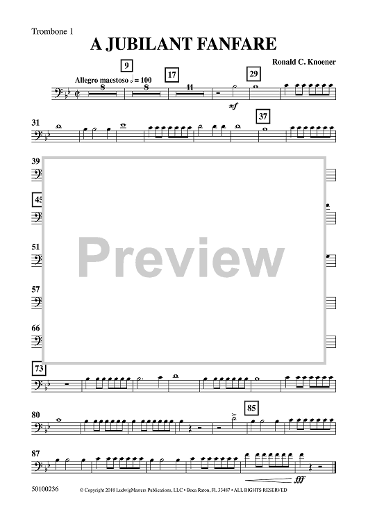 "A Jubilant Fanfare - Trombone 1" Sheet Music by Ronald C. Knoener