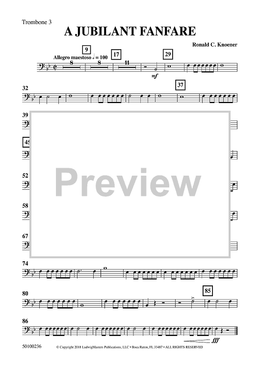 "A Jubilant Fanfare - Trombone 3" Sheet Music by Ronald C. Knoener