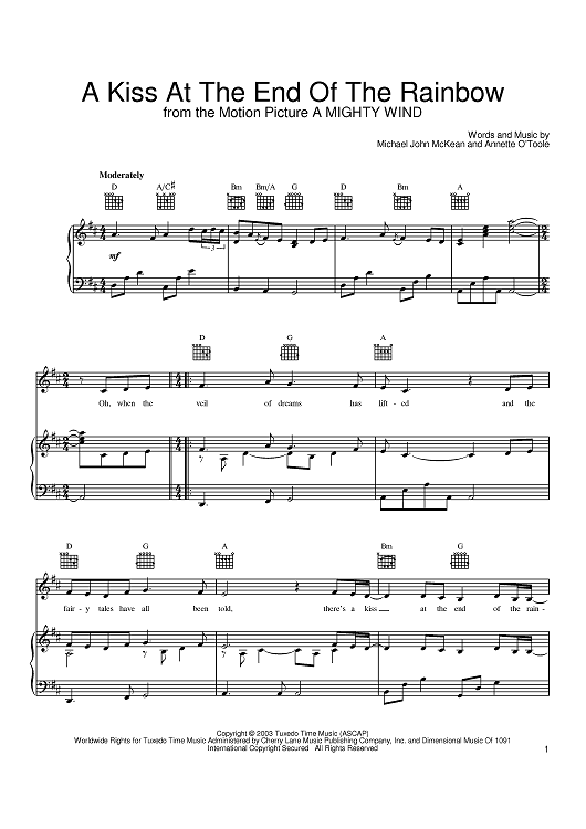 Digital Sheet Music for A Kiss At The End Of The Rainbow by Michael John McKean, Mitch & Mickey, Annette O'Toole scored for Piano/Vocal/Chords; id:398510