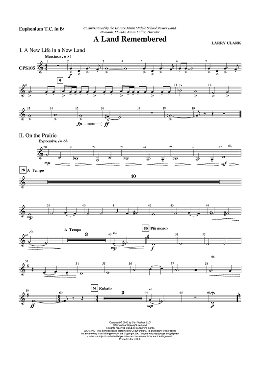 "A Land Remembered - Euphonium TC" Sheet Music by Larry Clark