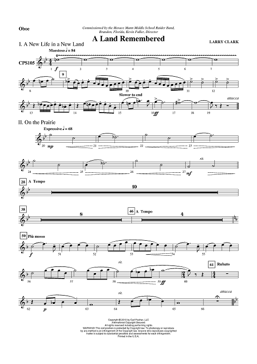 "A Land Remembered - Oboe" Sheet Music by Larry Clark