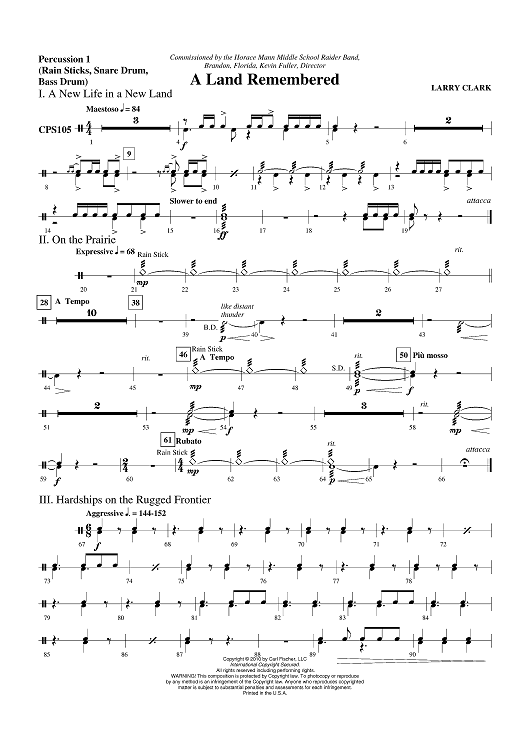 "A Land Remembered - Percussion 1" Sheet Music by Larry Clark