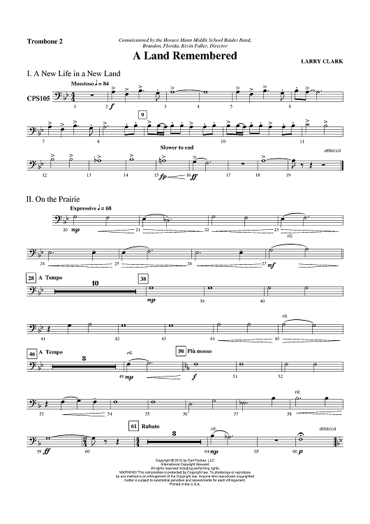 "A Land Remembered - Trombone 2" Sheet Music by Larry Clark
