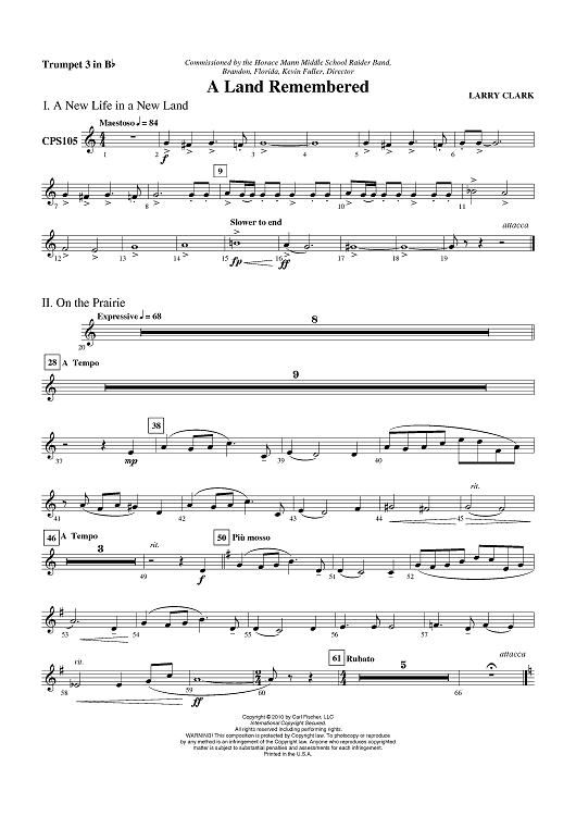 "A Land Remembered - Trumpet 3 in Bb" Sheet Music by Larry Clark