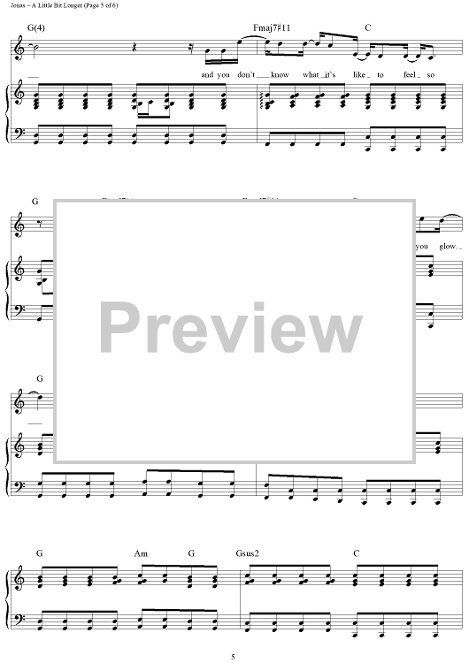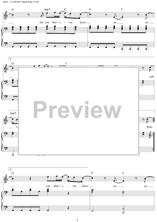 Digital Sheet Music for A Little Bit Longer by Nicholas Jonas, Jonas Brothers scored for Piano/Vocal/Chords; id:404407