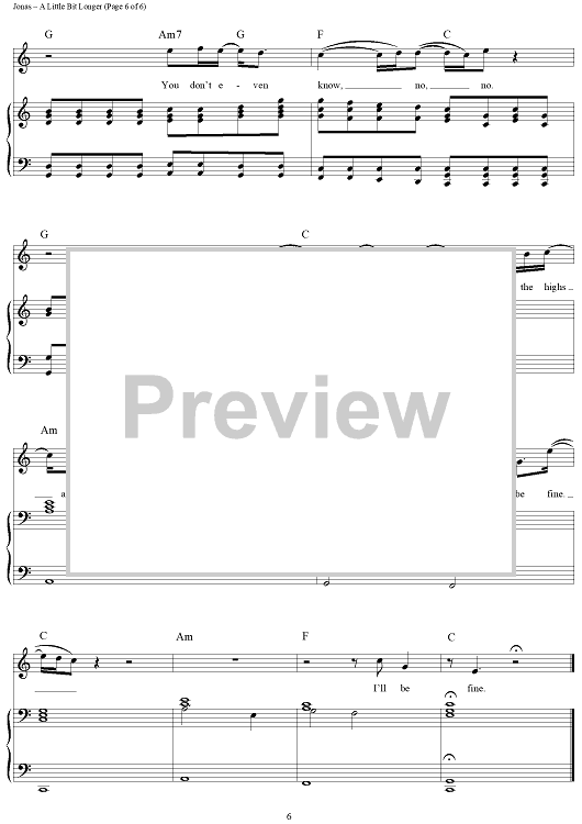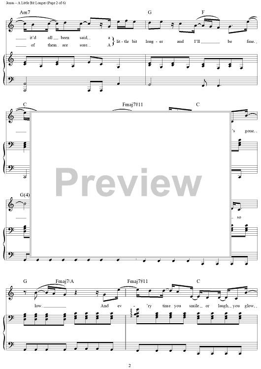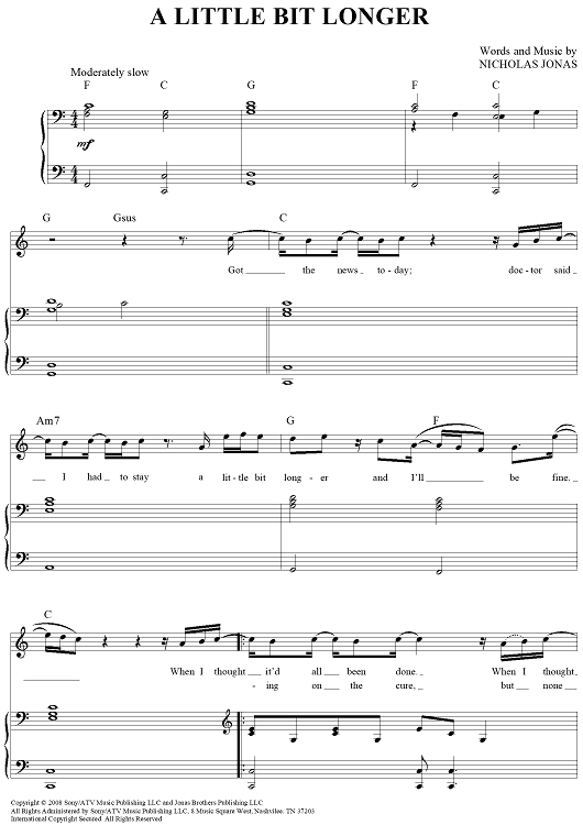 "A Little Bit Longer" Sheet Music by Jonas Brothers