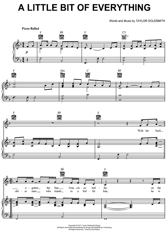 Digital Sheet Music for A Little Bit Of Everything by Taylor Goldsmith, Dawes scored for Piano/Vocal/Chords; id:499720