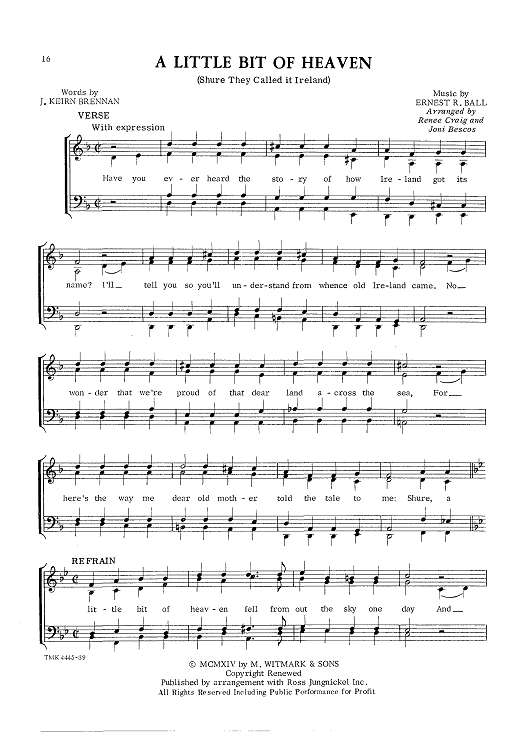Digital Sheet Music for A Little Bit Of Heaven by J. Keirn Brennan, Ernest R. Ball, Joni Bescos, Renee Craig scored for Barbershop Quartet; id:423850