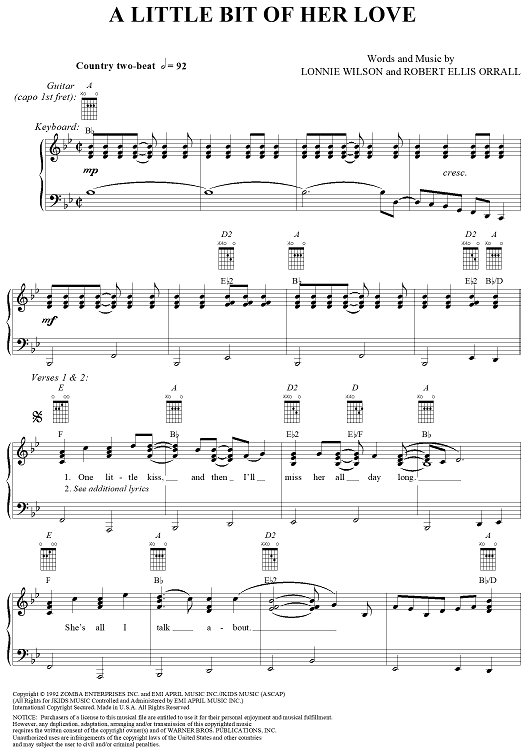 Digital Sheet Music for A Little Bit of Her Love by Michael Peterson, Robert Ellis Orrall scored for Piano/Vocal/Chords; id:263889