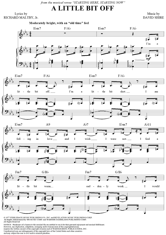 Digital Sheet Music for A Little Bit Off by David Shire, Richard Maltby Jr. scored for Piano/Vocal; id:257517