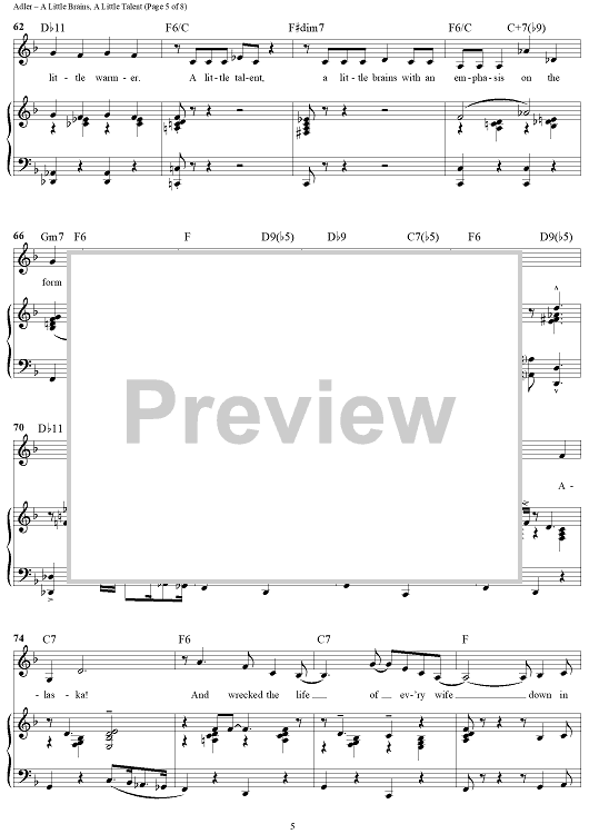 Digital Sheet Music for A Little Brains, A Little Talent by Jerry Ross, Richard Adler scored for Piano/Vocal/Chords; id:438053