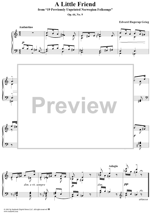 Digital Sheet Music for A Little Friend by Edvard Grieg scored for Piano Solo; id:267806