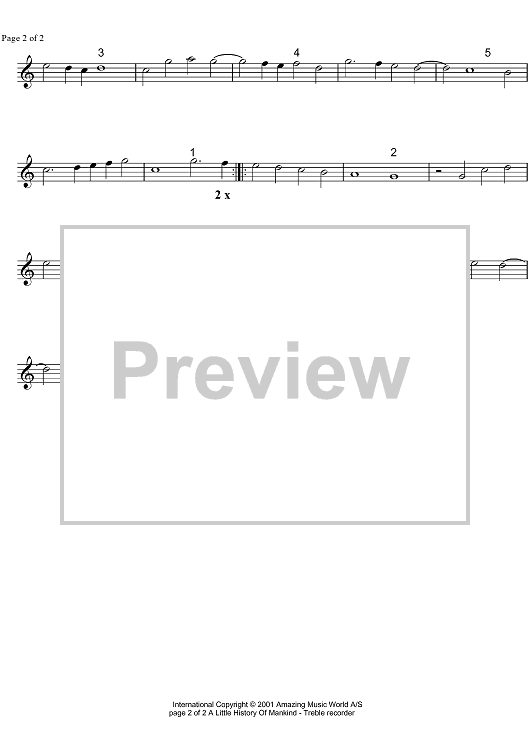 Digital Sheet Music for A Little History of Mankind - Recorder 4 by Kees Boeke scored for 40 Recorders; id:323037
