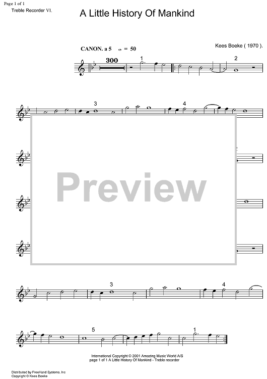 Digital Sheet Music for A Little History of Mankind - Recorder 6 by Kees Boeke scored for 40 Recorders; id:323039