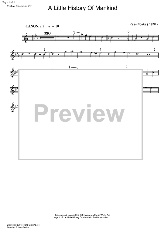 Digital Sheet Music for A Little History of Mankind - Recorder 7 by Kees Boeke scored for 40 Recorders; id:323040