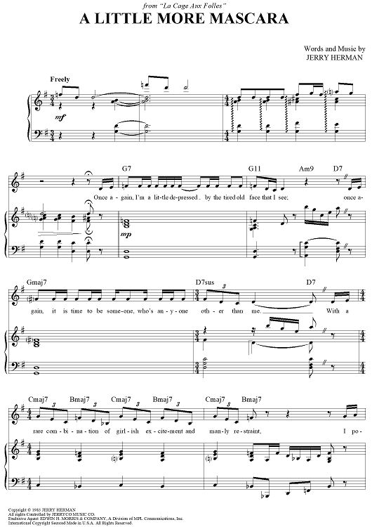 Digital Sheet Music for A Little More Mascara - from La Cage Aux Folles by Jerry Herman scored for Piano/Vocal/Chords; id:465414