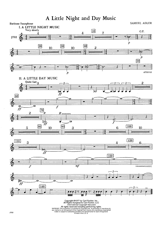 "A Little Night and Day Music - Baritone Sax" Sheet Music by Samuel Adler