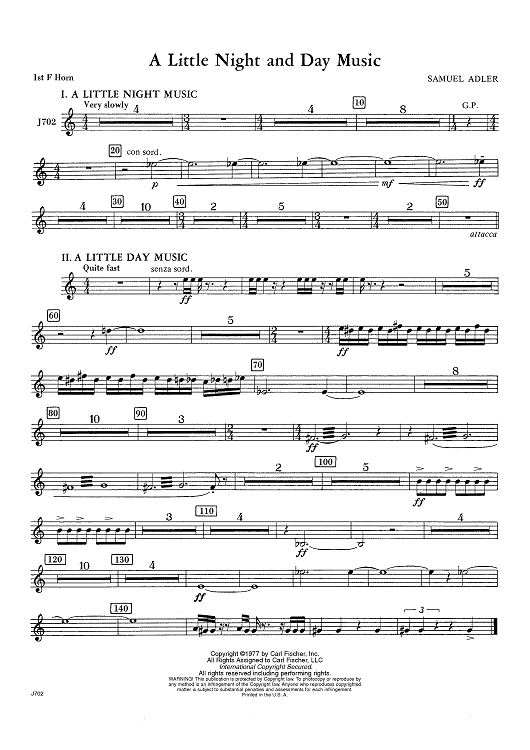 "A Little Night and Day Music - Horn 1" Sheet Music by Samuel Adler