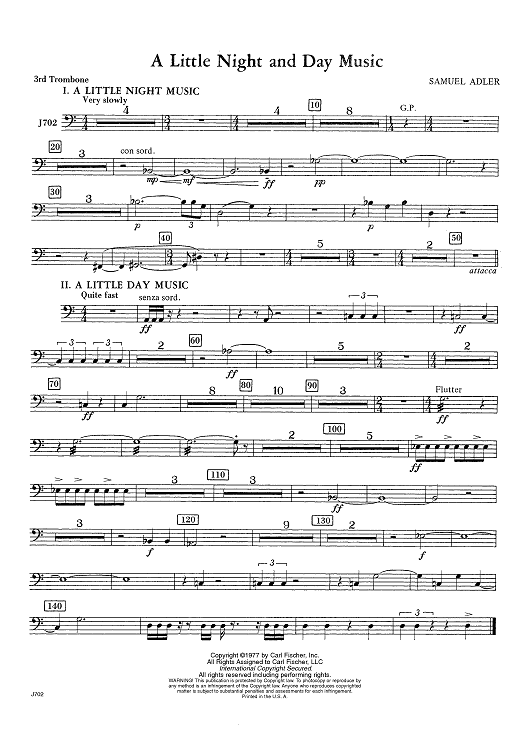 "A Little Night and Day Music - Trombone 3" Sheet Music by Samuel Adler